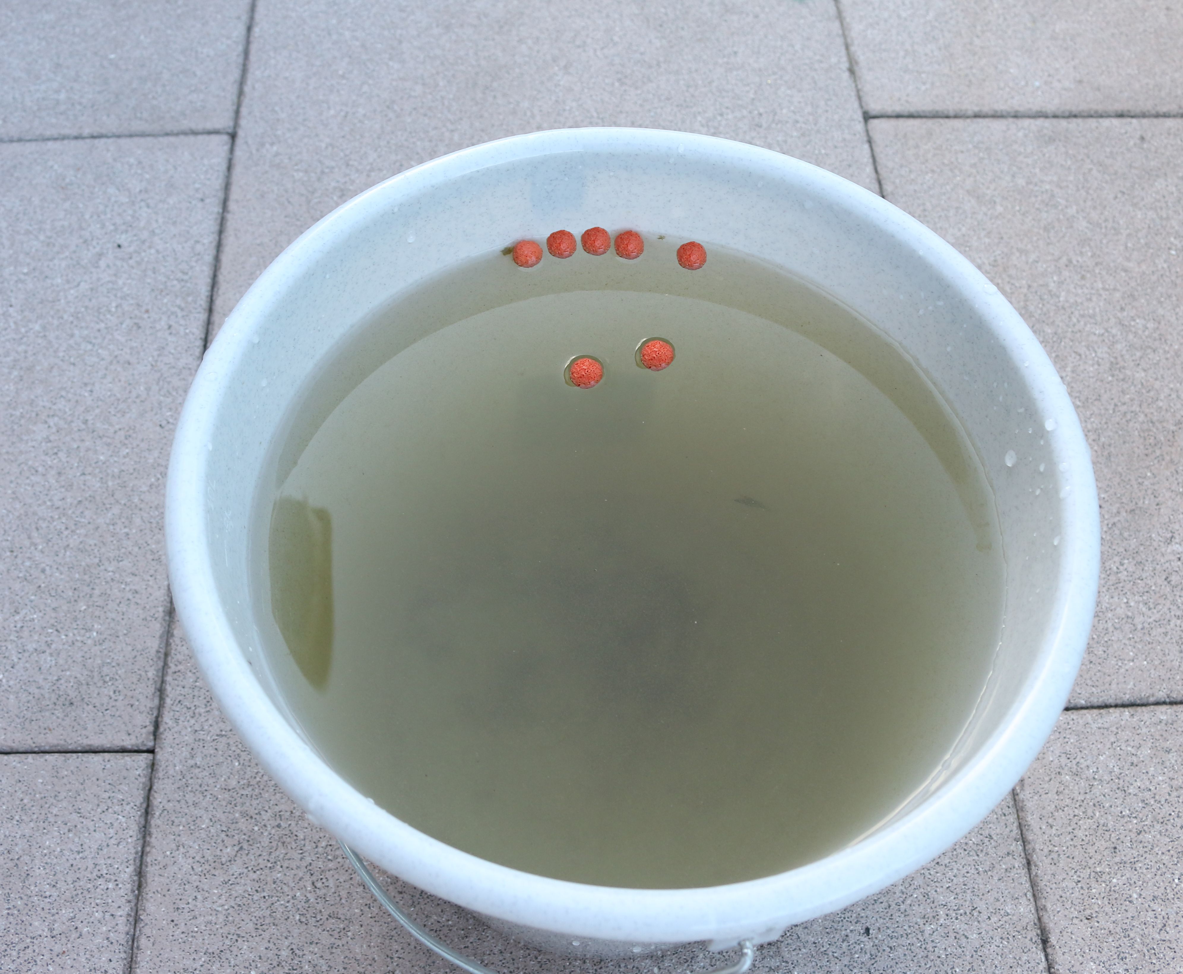 Reinigungswasser nach Schlauchreinigung mit Schwammkugeln